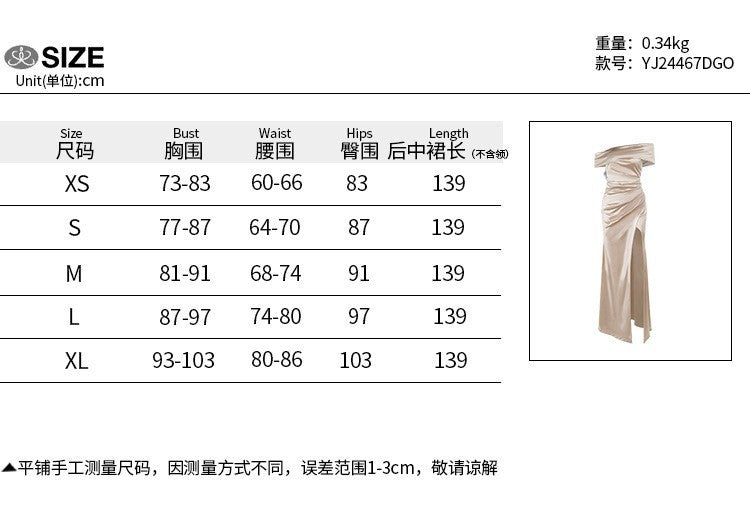 Elegant Off Shoulder Satin Slit Dress, Wedding Extra Long Formal Gown, Christmas Party Dress, Bridesmaid Dress